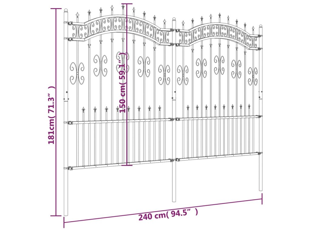 Zahradní plot s kopím nahoře černý 240 x 150 cm, práškově lakovaná ocel 151087