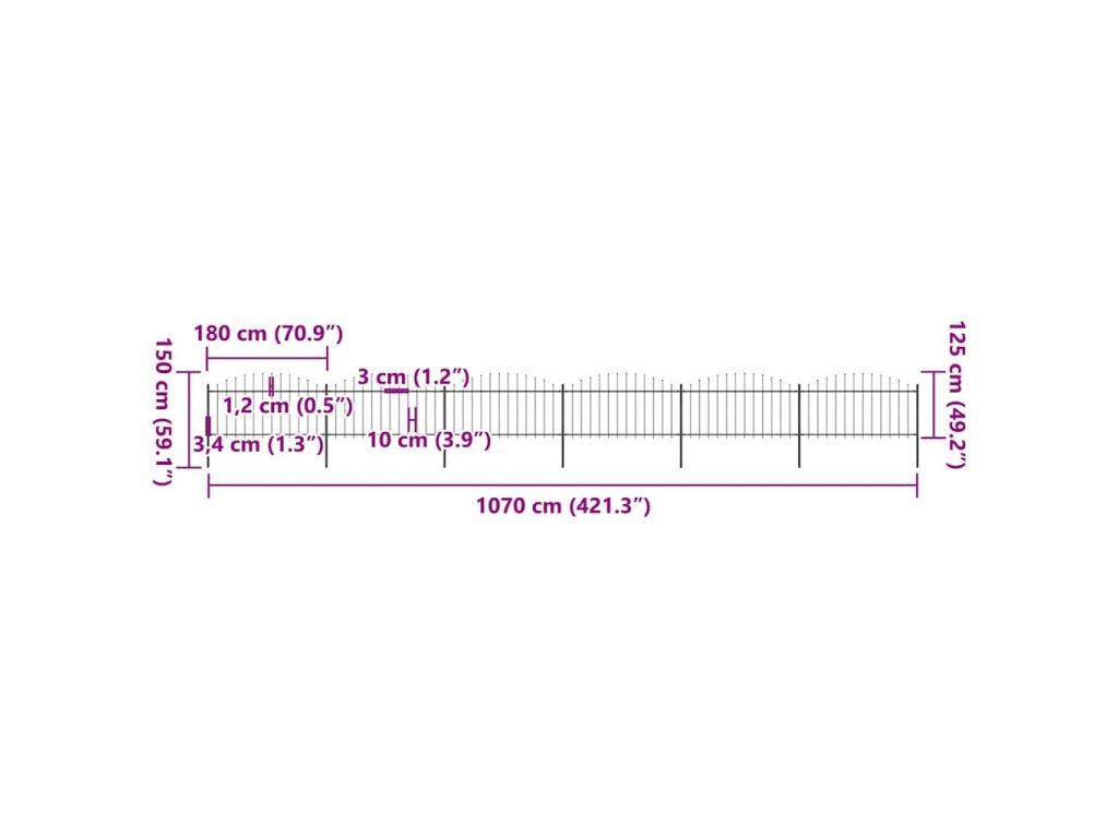 Zahradní plot s kopím nahoře ocelový 1070 x 150 cm černý 277735