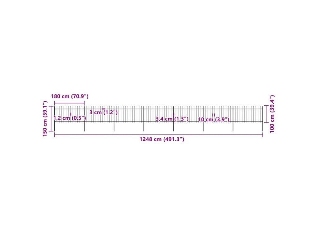 Vytvořte si okolo vaší zahrady, domu nebo příjezdové cesty elegantní oplocení s naším zahradním plotem! Tvoří ho 7 plotových dílců s 8 sloupky a má celkovou délku 11,9 metrů. Umožní vám okolo vaší zahrady, domu, komerčního pozemku nebo výběhu pro zvířata postavit pevnou, robustní bariéru. Jedná se o bezpečný a bezúdržbový dekorativní zahradní plot.
