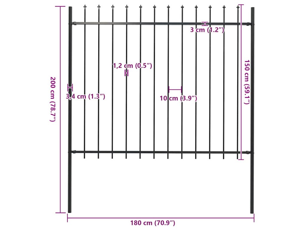 Zahradní plot s kopím nahoře ocelový 181 x 150 cm černý 144927