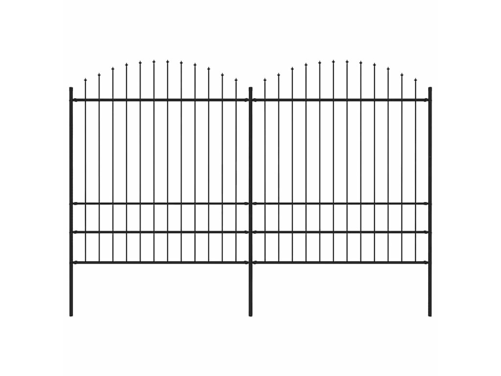Zahradní plot s kopím nahoře ocelový 359 x 200 cm černý 277749