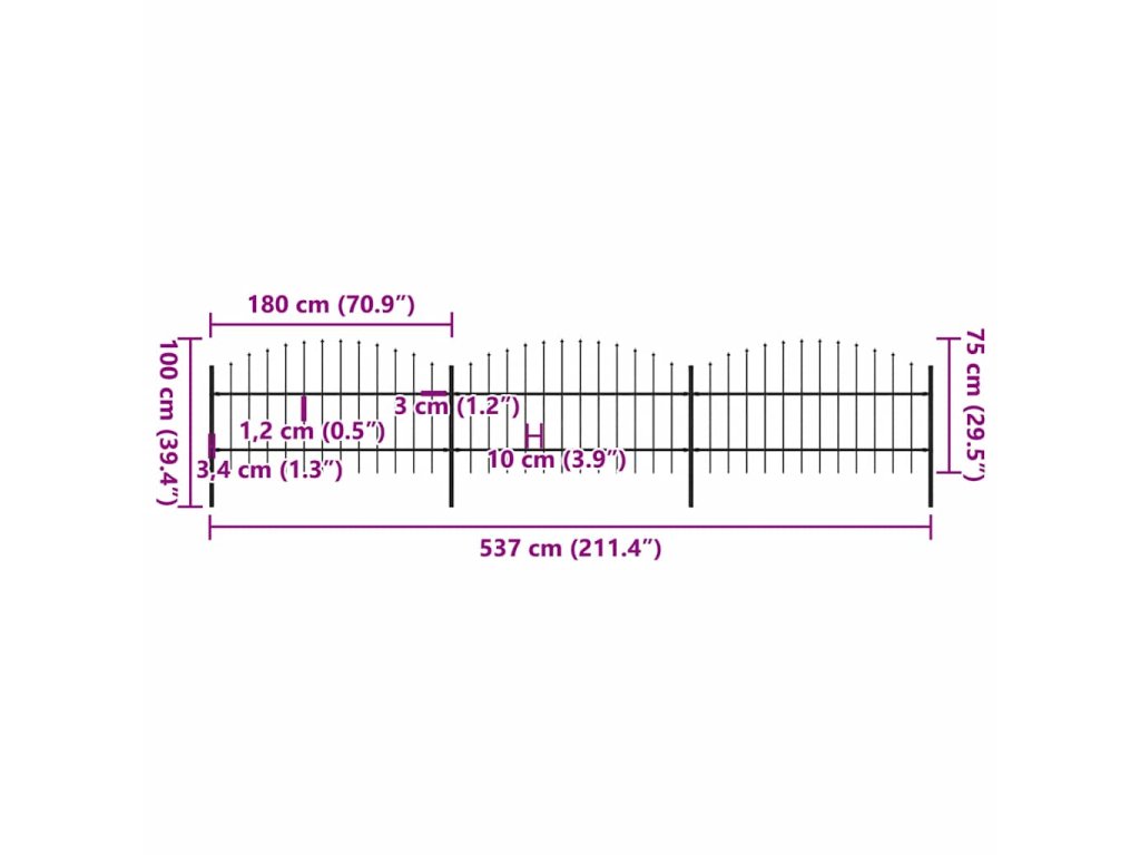 Zahradní plot s kopím nahoře ocelový 537 x 100 cm černý 277714