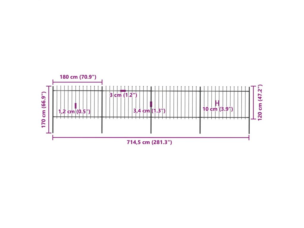 Zahradní plot s kopím nahoře ocelový 714,5 x 120 cm černý 277623
