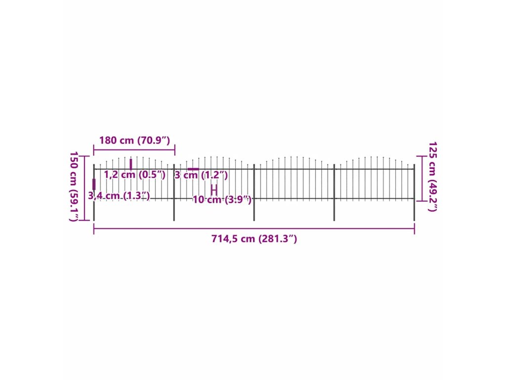Zahradní plot s kopím nahoře ocelový 714,5 x 150 cm černý 277733
