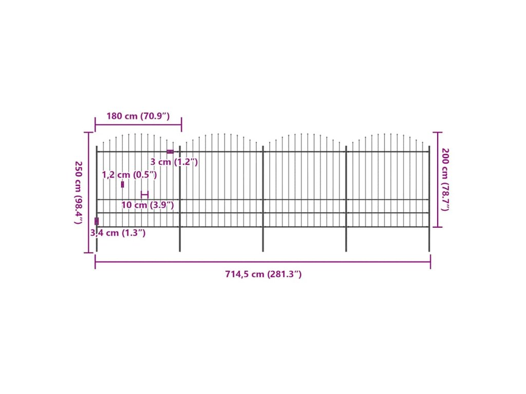 Zahradní plot s kopím nahoře ocelový 714,5 x 200 cm černý 277751