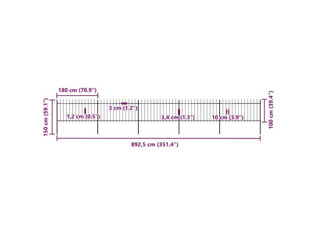 Náš zahradní plot tvoří svislé pruty nahoře zakončené hroty a pevné vodorovné výztuhy, které rám zpevňují. Poskytuje vysokou míru zabezpečení. Je zhotovený z vysoce odolné oceli ošetřené práškováním, a tudíž je výjimečně stabilní, pevný a dlouhodobě odolný. Sestavení zahradního plotu je snadné, veškerý montážní materiál je totiž součástí balení.