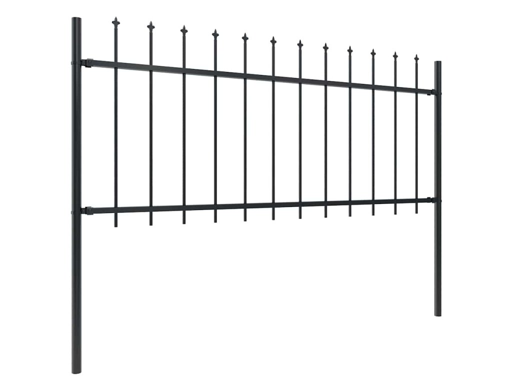 Zahradní plot s kopím nahoře ocelový 892,5 x 80 cm černý 277606