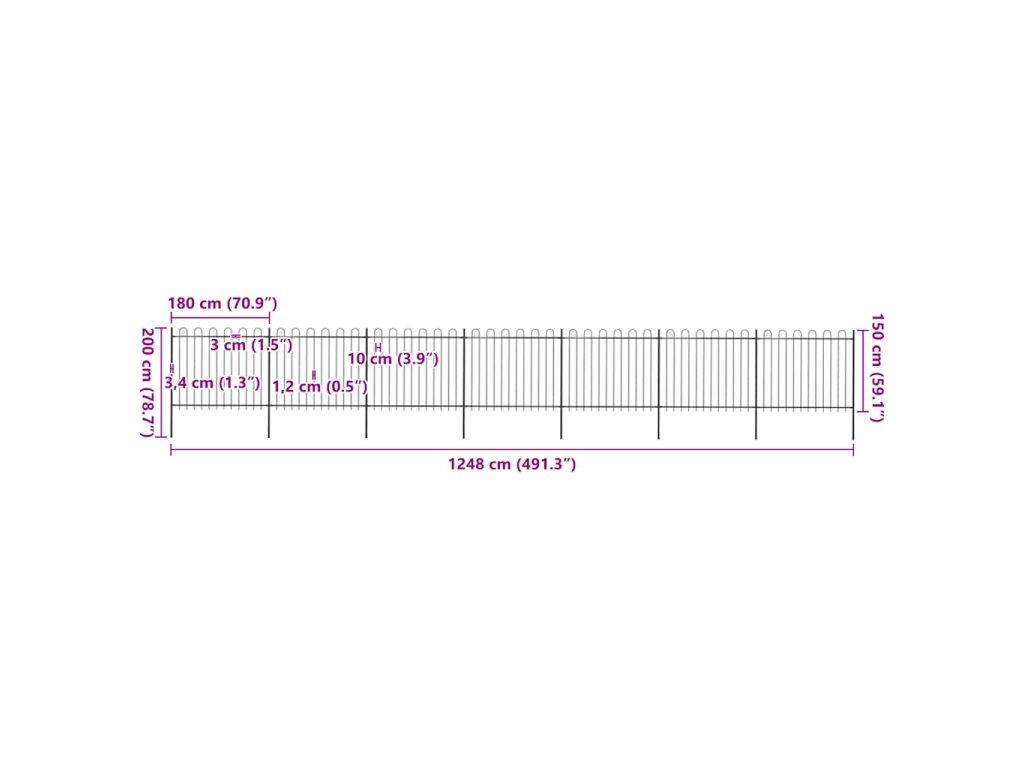 Zahradní plot s obloukem nahoře ocelový 1248 x 150 cm černý 277680