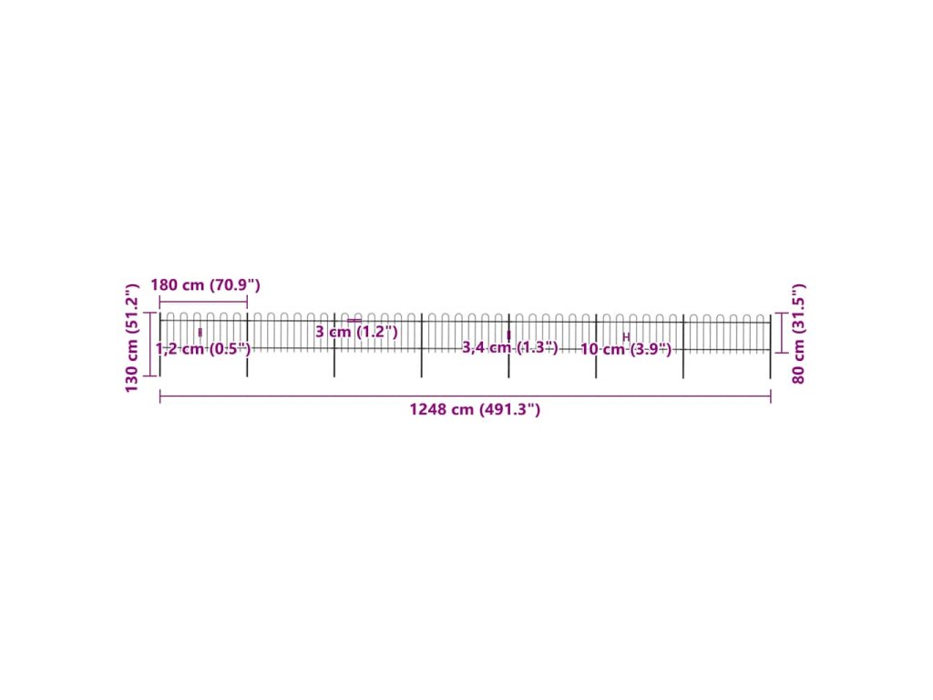 Zahradní plot s obloukem nahoře ocelový 1248 x 80 cm černý 277653