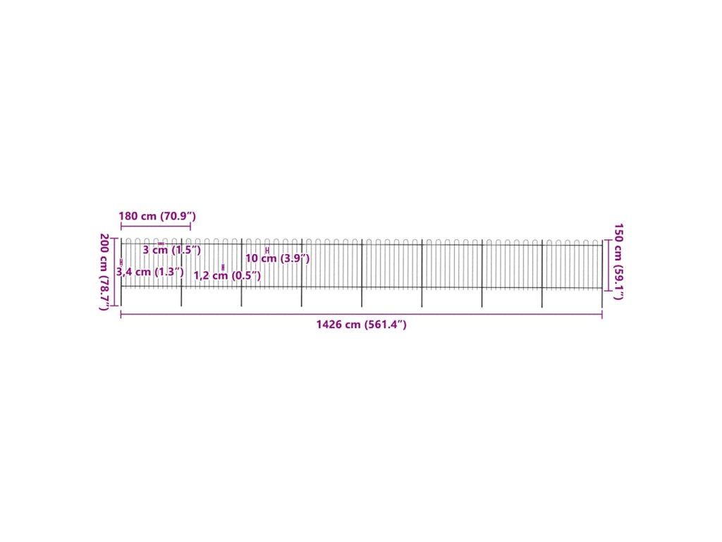 Zahradní plot s obloukem nahoře ocelový 1426 x 150 cm černý 277681