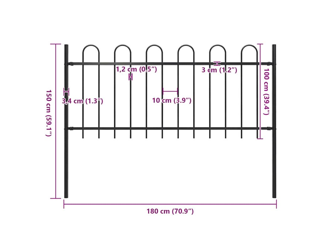 Vytvořte si okolo vaší zahrady, domu nebo příjezdové cesty elegantní oplocení s naším dekorativním zahradním plotem s obloučky! Je vyroben z oceli a má celkovou délku 1,8 metrů. Pomůže vám okolo vaší zahrady, domu, komerčního pozemku nebo výběhu pro zvířata vztyčit robustní bariéru.
