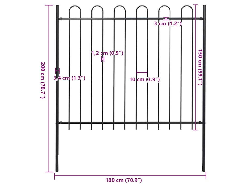 Zahradní plot s obloukem nahoře ocelový 181 x 150 cm černý 144932