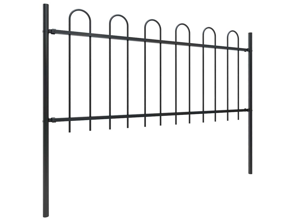Zahradní plot s obloukem nahoře ocelový 181 x 80 cm černý 144929