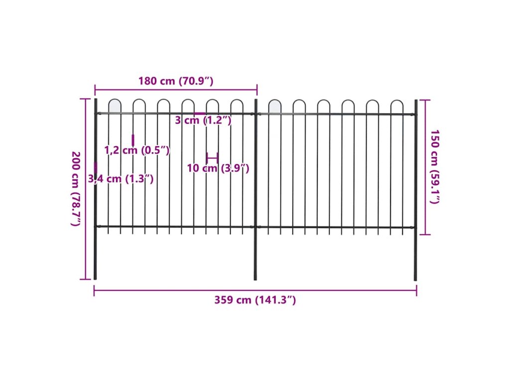 Zahradní plot s obloukem nahoře ocelový 359 x 150 cm černý 277675