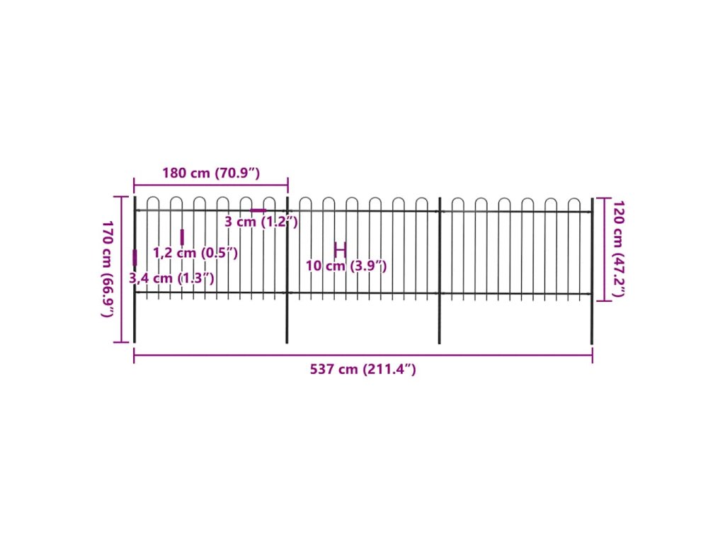 Zahradní plot s obloukem nahoře ocelový 537 x 120 cm černý 277667