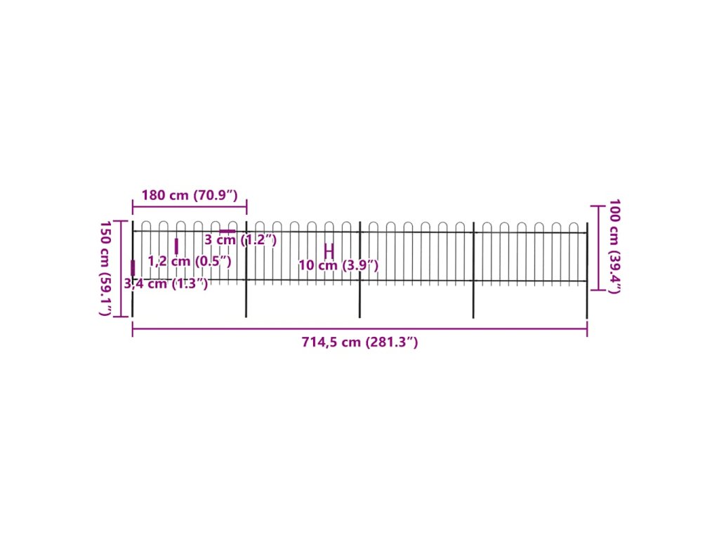 Zahradní plot s obloukem nahoře ocelový 714,5 x 100 cm černý 277659