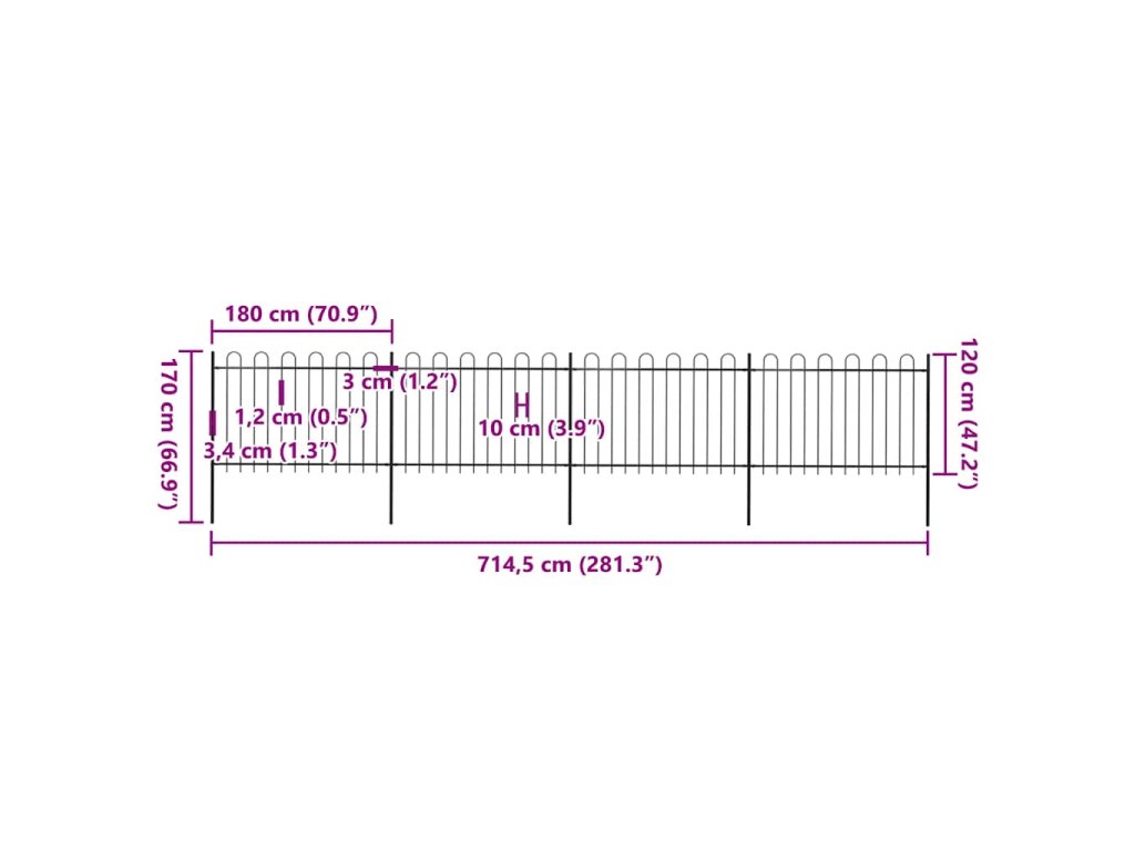 Zahradní plot s obloukem nahoře ocelový 714,5 x 120 cm černý 277668