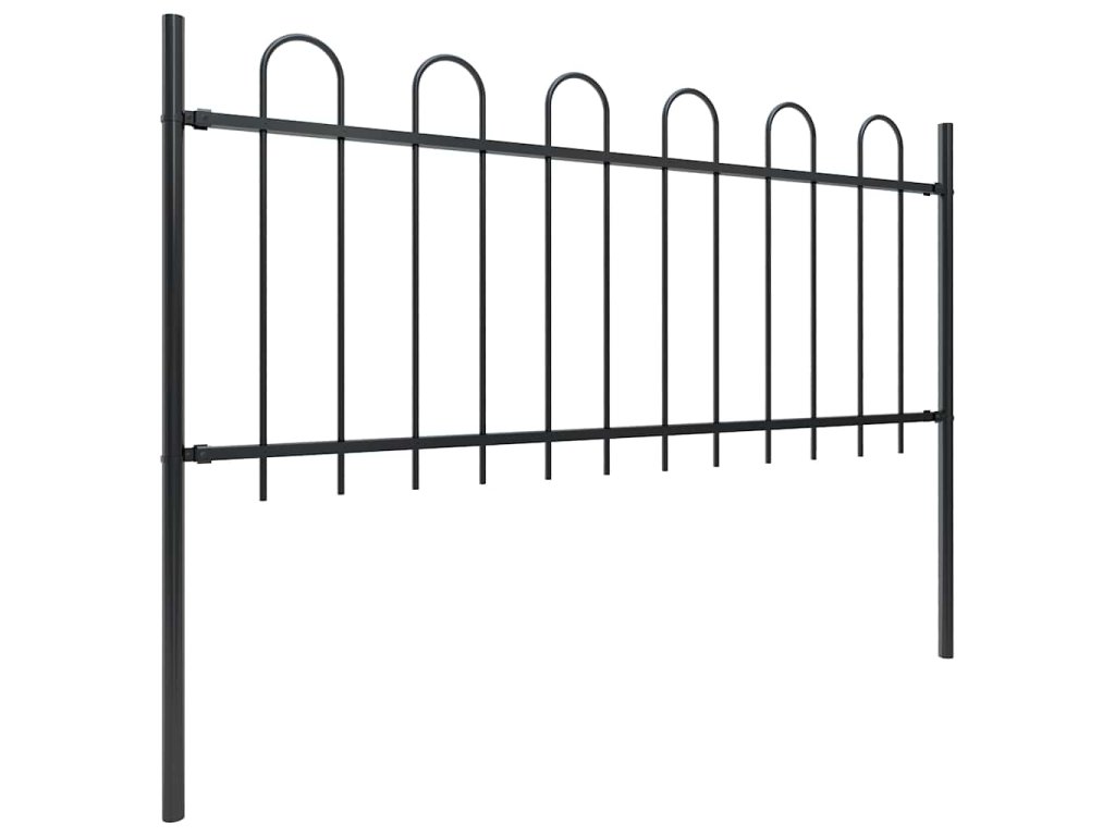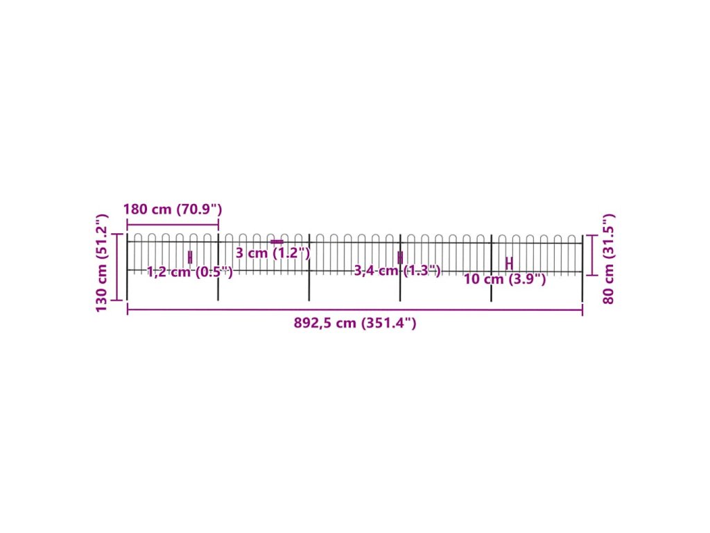 Zahradní plot s obloukem nahoře ocelový 892,5 x 80 cm černý 277651
