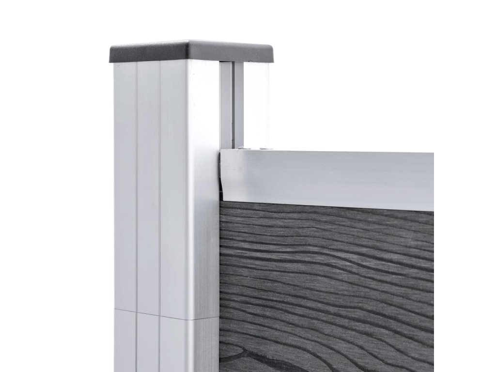 WPC plot má z jedné strany potisk dřevěné kresby a z druhé běžný potisk, takže si můžete vybrat, který design se vám líbí víc. Náš dřevoplastový panel nevyžaduje žádnou dodatečnou údržbu, jako je olejování nebo natírání. Je velmi odolný vůči hnilobě i rzi. Horní hliníkový profil vám umožní plotové desky pevně připojit jednu ke druhé, a zvýšit tak jejich pevnost a odolnost proti nárazu. Design modulárního systému usnadňuje instalaci plotových prken a dává vám možnost plot dle libosti rozšiřovat. Na každém sloupku se nachází tři drážky, takže můžete plot sestavovat různými způsoby, například v jedné rovině (180 stupňů), v pravém úhlu (90 stupňů) nebo do tvaru písmene T. Balení obsahuje 54 WPC desek, 7 sloupků a 6 hliníkových lišt.