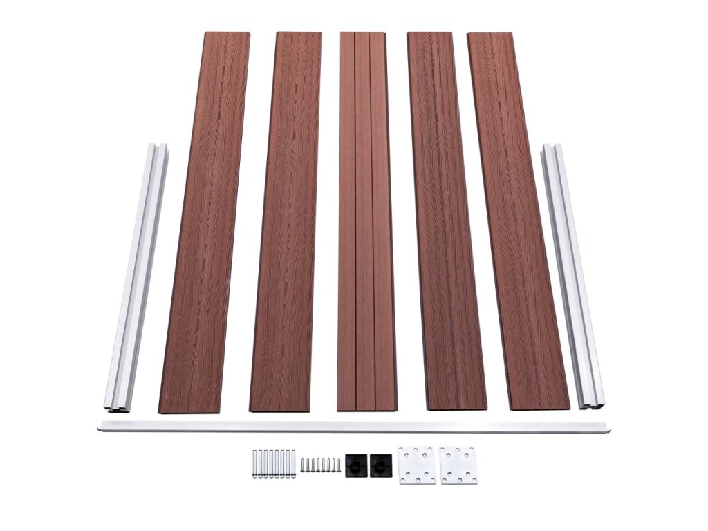 - Materiál: dřevoplast + hliníková lišta a sloupky