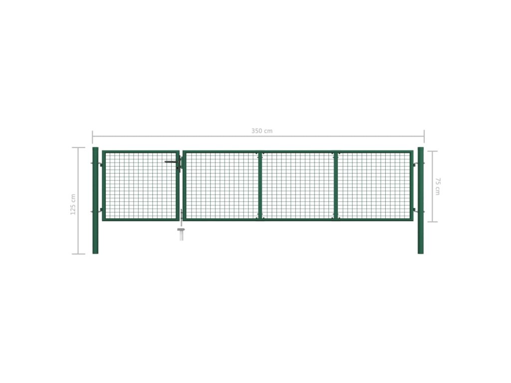 Zahradní plotová brána ocel 350 x 75 cm zelená 144304