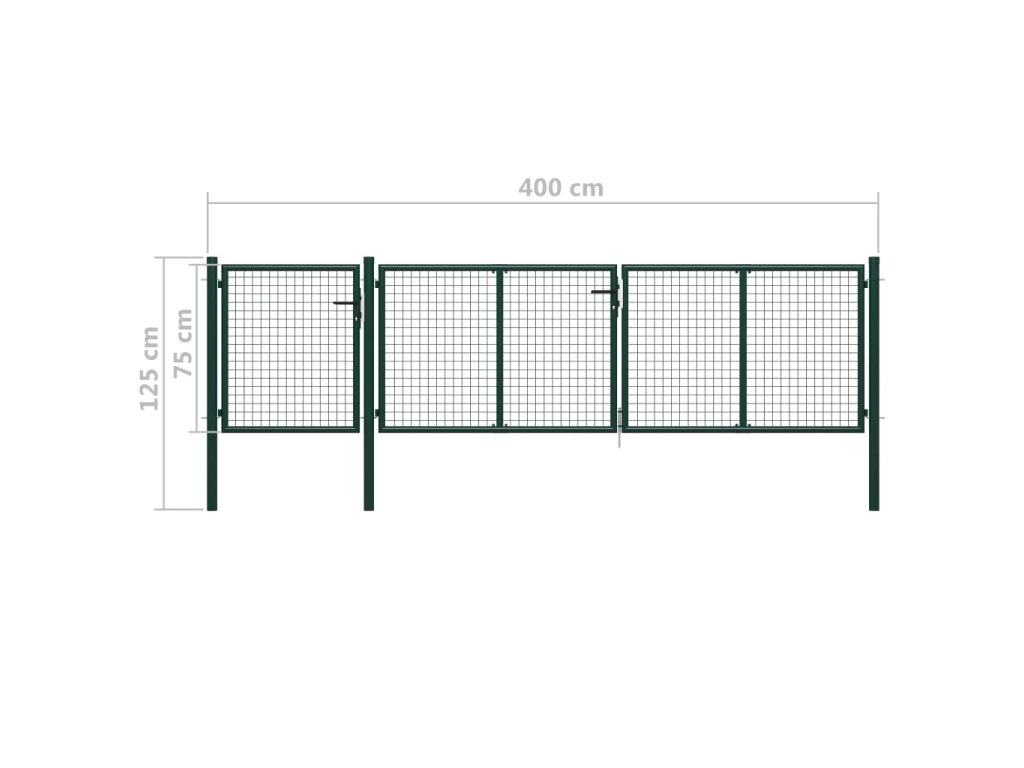 Zahradní plotová brána ocel 400 x 75 cm zelená 144310