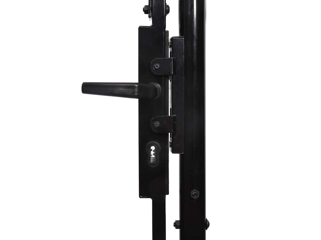 Elegantní zaoblený design naší brány je velmi atraktivní. Silné vodorovné výztuhy zpevňují rám, a zvyšují tak bezpečnost brány. Naše brána proto vytvoří nejen působivý vstup na váš pozemek, ale také spolehlivou bariéru. Je vyrobená z oceli a ošetřená práškovým lakem, který ji chrání před rzí a korozí. Zahradní brána je rovněž vybavená zámkem. Dodáváme ji spolu se třemi robustními sloupky s pevnými závěsy pro snadnou instalaci. Součástí dodávky je též zemní otočná zarážka, která umožňuje pro větší bezpečnost zajistit obě křídla brány na místě. Tato branka je skvělou kombinací stylu, pevnosti a stability!