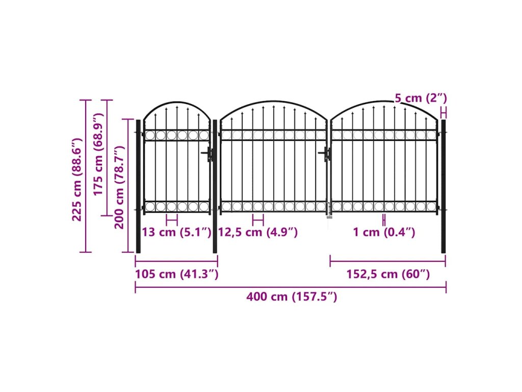 Zahradní plotová brána s obloukem ocelová 2,25 x 4 m černá 144369