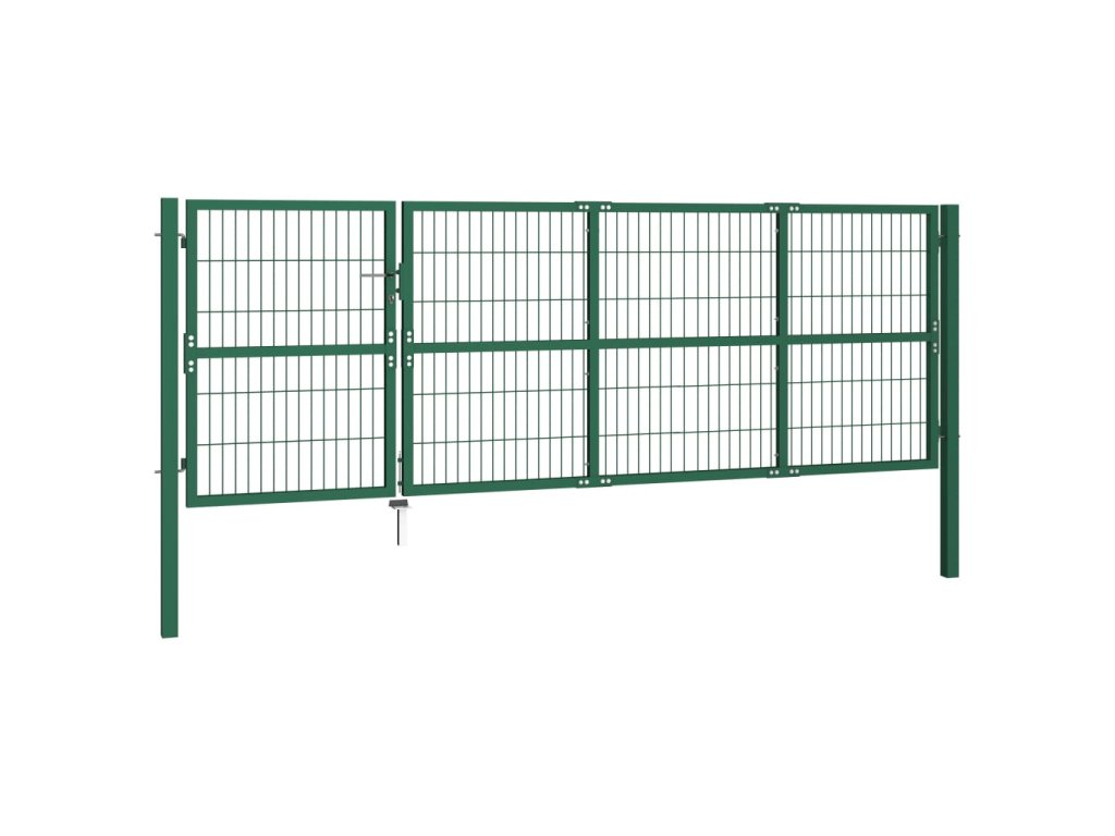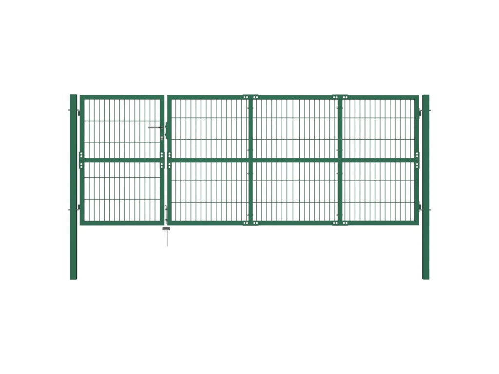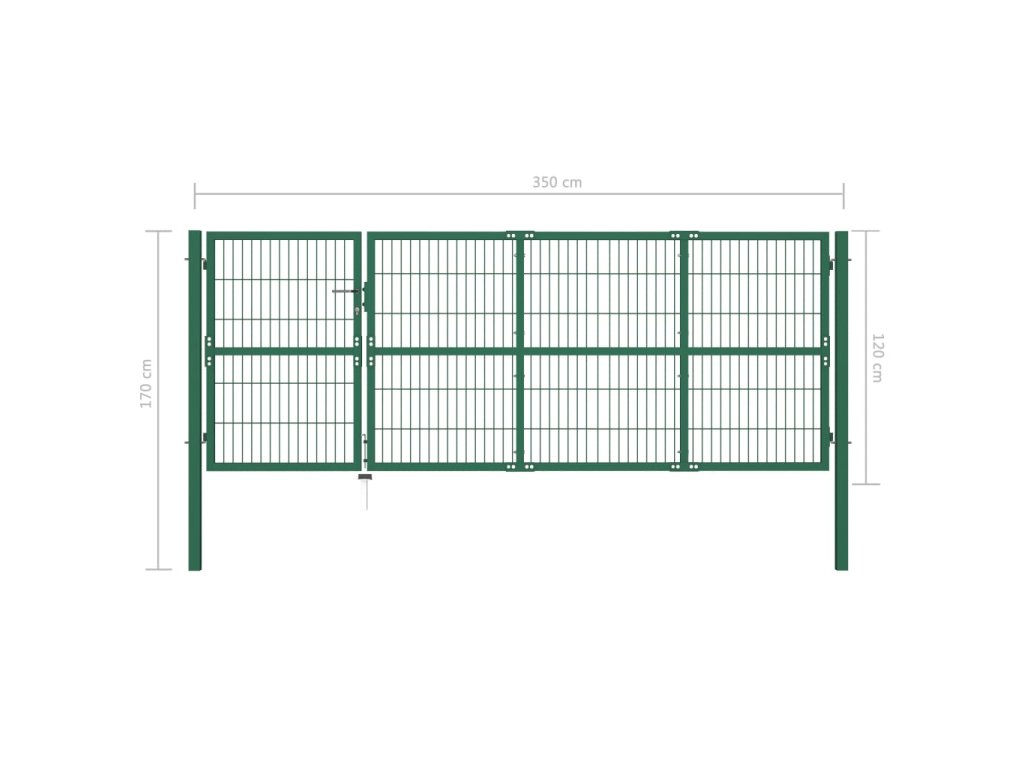 Zahradní plotová brána se sloupky 350 x 120 cm ocel zelená 142570