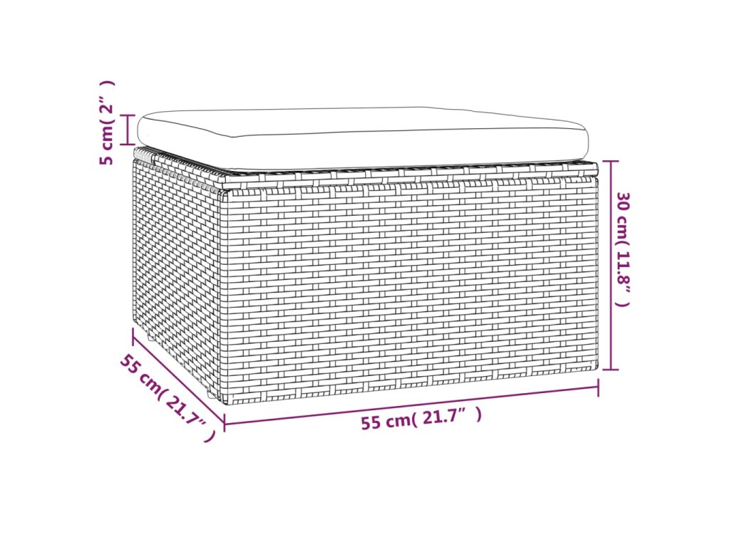 Zahradní podnožka s poduškou šedá 55 x 55 x 30 cm polyratan 318668