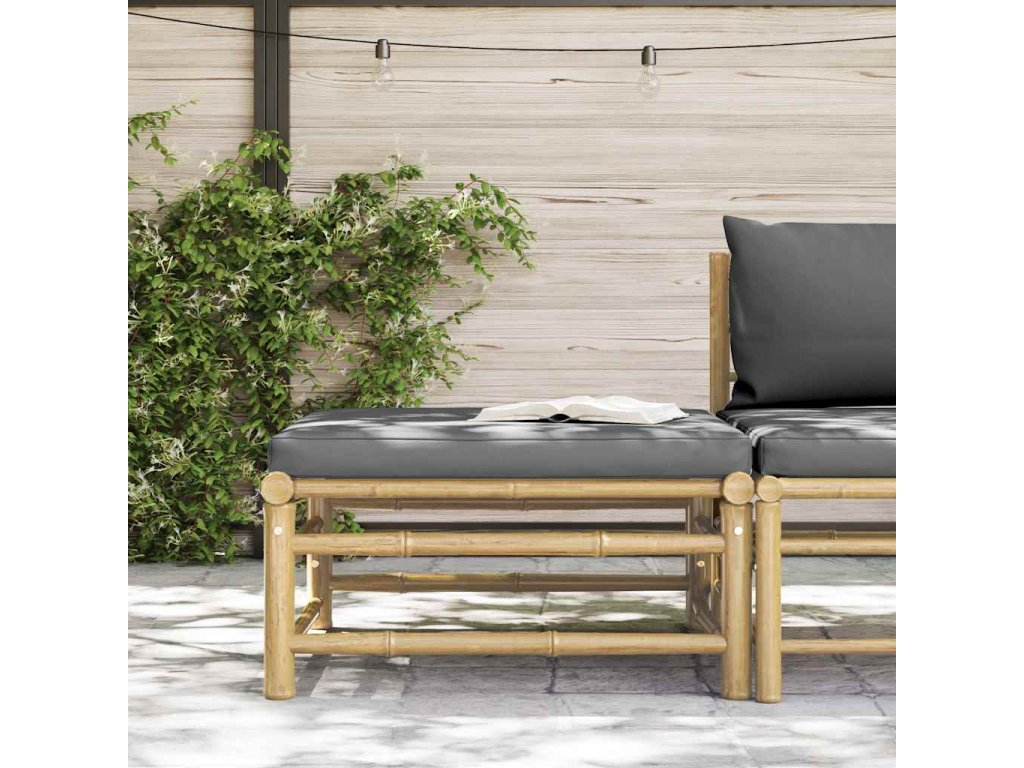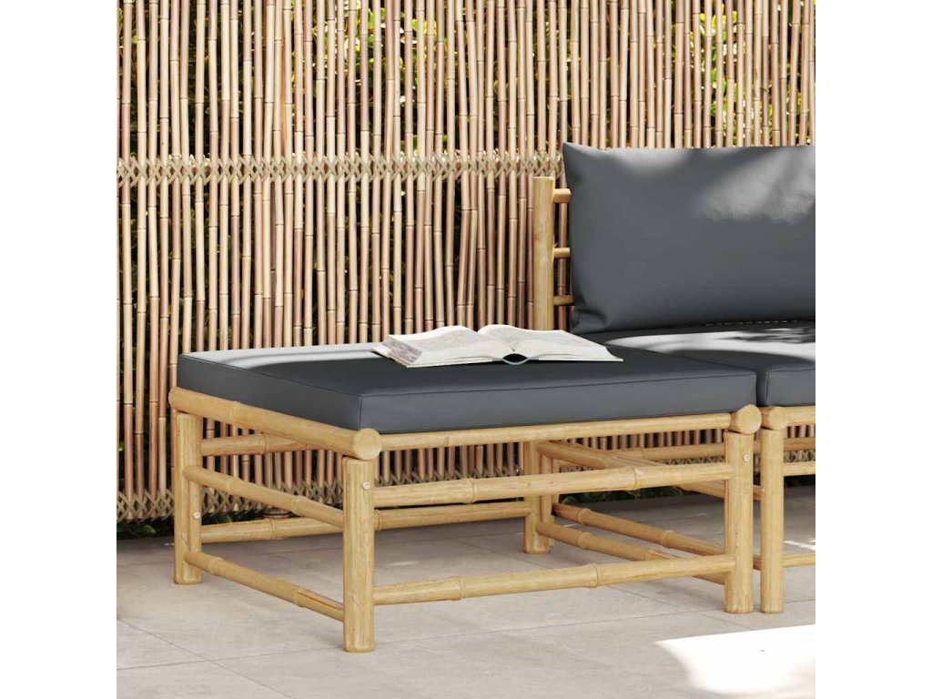 Zahradní podnožka s tmavě šedou poduškou bambus 313155