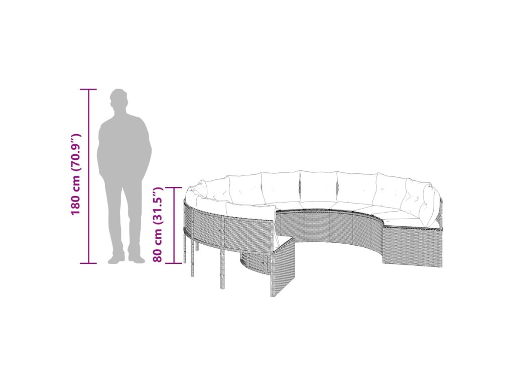 Zahradní pohovka s poduškami kulatá šedá polyratan 3318541
