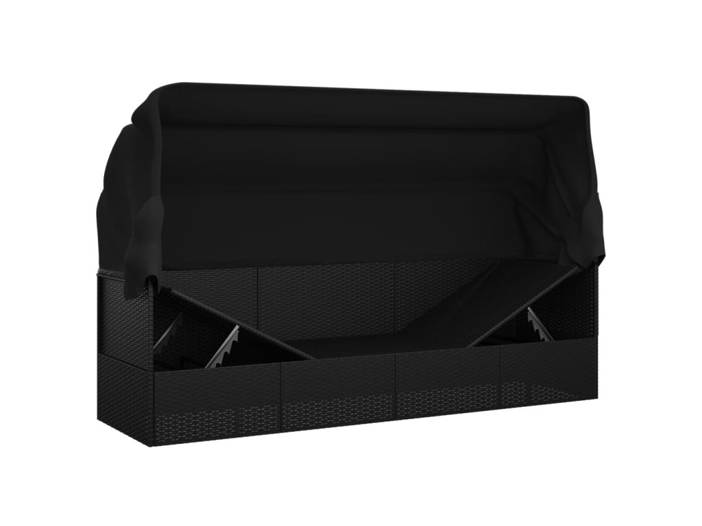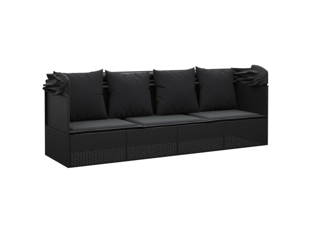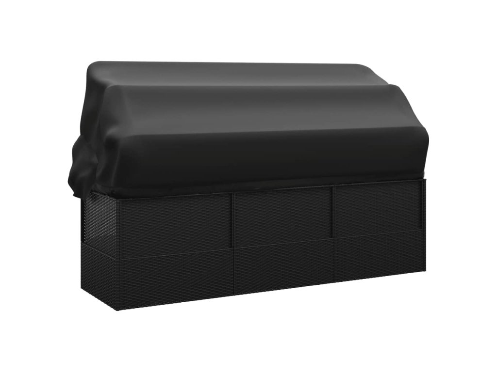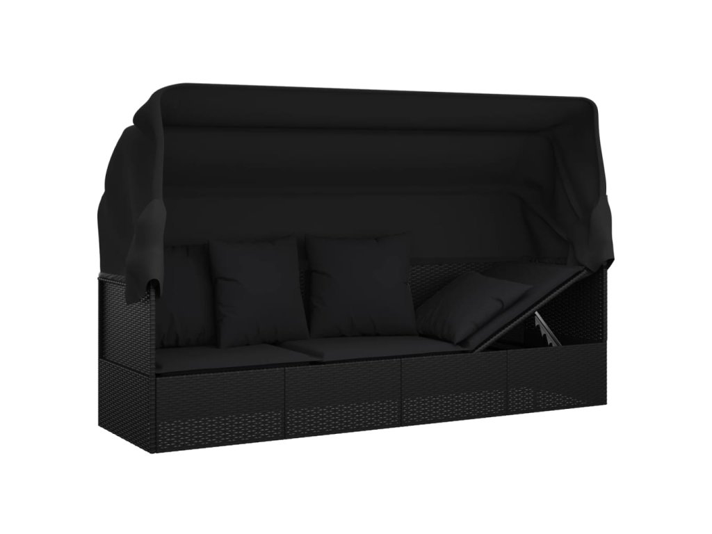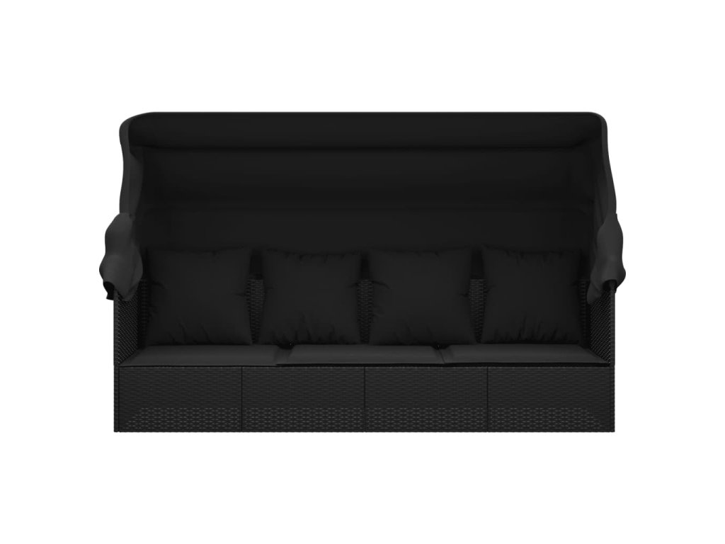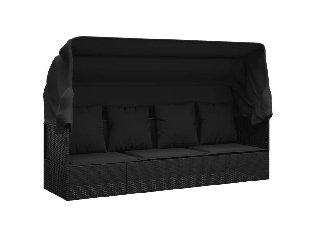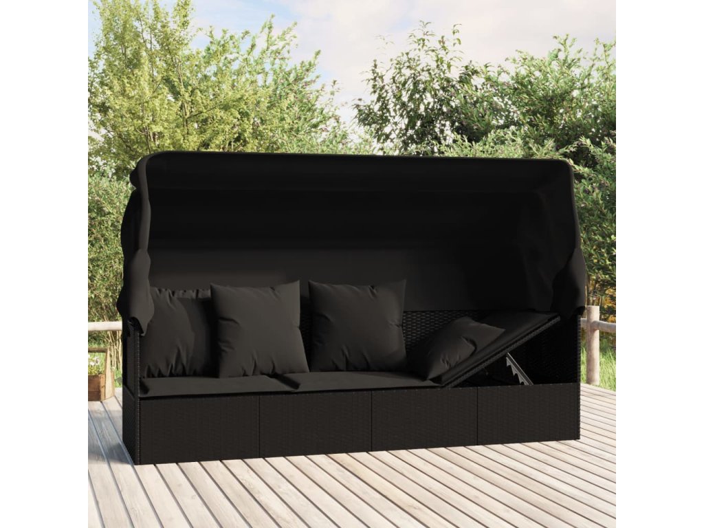 Zahradní pohovka se střechou a polštáři černá polyratan 319569