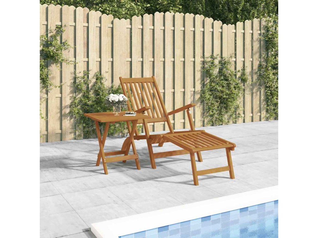 Zahradní polohovací křeslo s podnožkou a stolkem masivní akácie 3120439