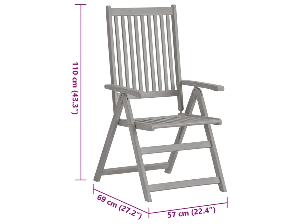 Křesla jsou vyrobená z masivního akáciového dřeva s šedou povrchovou úpravou. Akácie je tvrdé dřevo s hustou kresbou. Zahradní židle mají překrásný design, jsou stabilní, hodně toho vydrží a vypadají velice atraktivně. Opěradla židlí lze nastavit do 5 poloh, takže si vždy najdete tu nejpohodlnější, která vám zrovna vyhovuje. Podušky vám při odpočinku zajistí mimořádné pohodlí. Jsou vyrobené ze 100% polyesteru s voděodolnou povrchovou úpravou a každá z nich je opatřená elastickou gumičkou a 2 páry šňůrek, za které ji můžete pevně přivázat k židli.