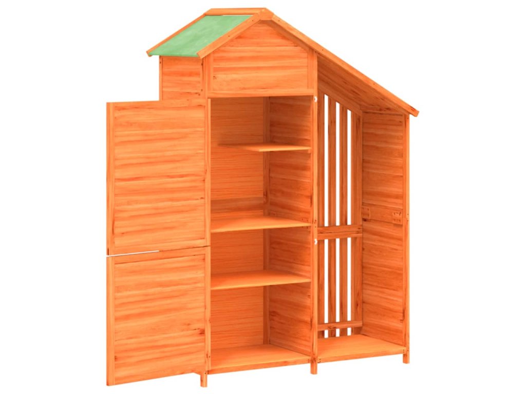 - Velký a organizovaný prostor: Tato dřevěná kůlna je dokonale navržená pro různé zahradní nářadí, vybavení pro péči o trávník, bazénové potřeby a nářadí s dlouhou násadou, jako jsou košťata, hrábě atd.