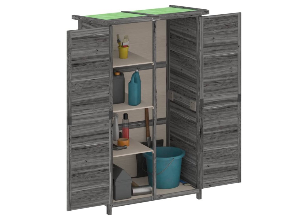 - Velký a organizovaný prostor: Tato dřevěná kůlna je dokonale navržená pro různé zahradní nářadí, vybavení pro péči o trávník, bazénové potřeby a nářadí s dlouhou násadou, jako jsou košťata, hrábě atd.