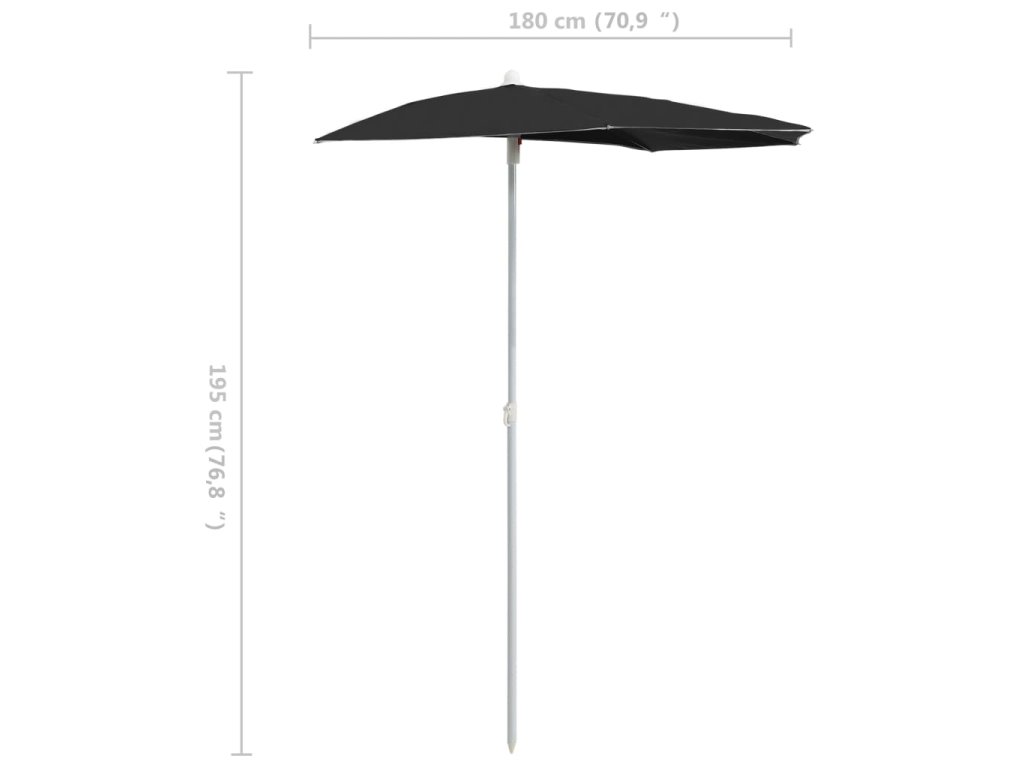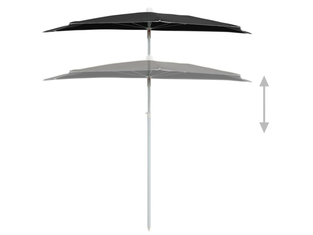Zahradní půlkruhový slunečník s tyčí 180 x 90 cm černý 315565