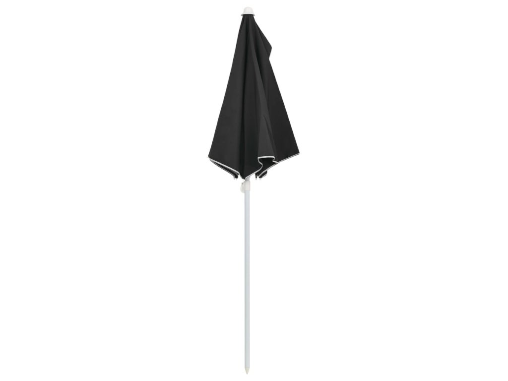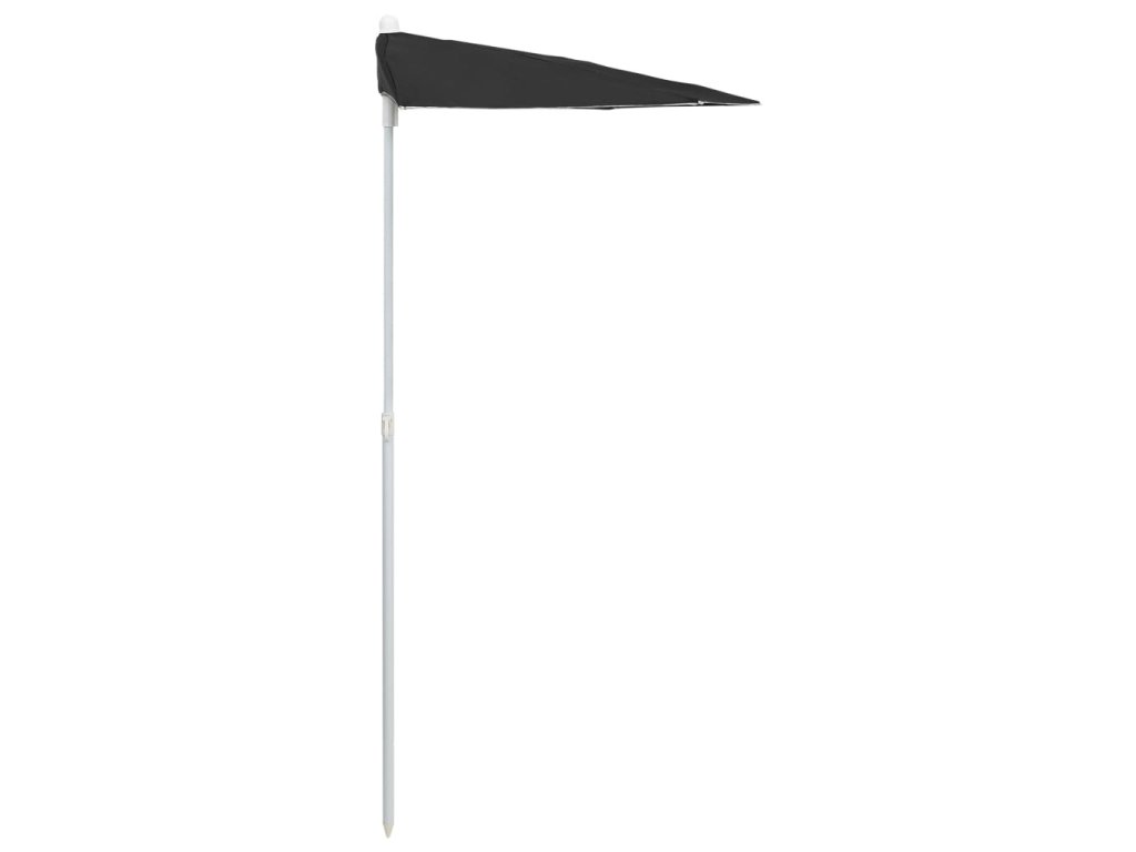 Stříška slunečníku je vyrobená z polyesterové tkaniny, která nepropouští škodlivé UV záření, je odolná vůči blednutí barev a snadno se čistí. Slunečník vám tudíž poskytne optimální ochranu před sluncem. Půlkruhový design dodává slunečníku jedinečné kouzlo. Silná ocelová tyč s 5 robustními ocelovými žebry zajišťuje, že se slunečník nehýbe a hodně toho vydrží. Otevírání i zavírání tohoto zahradního slunečníku je jednoduché.
