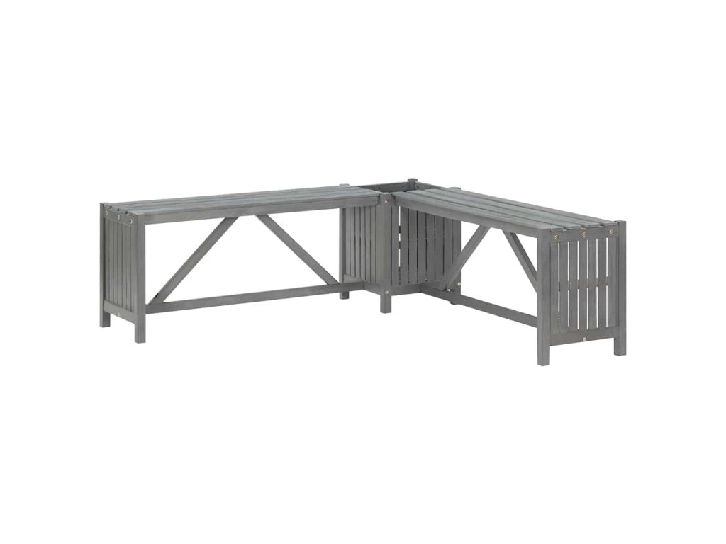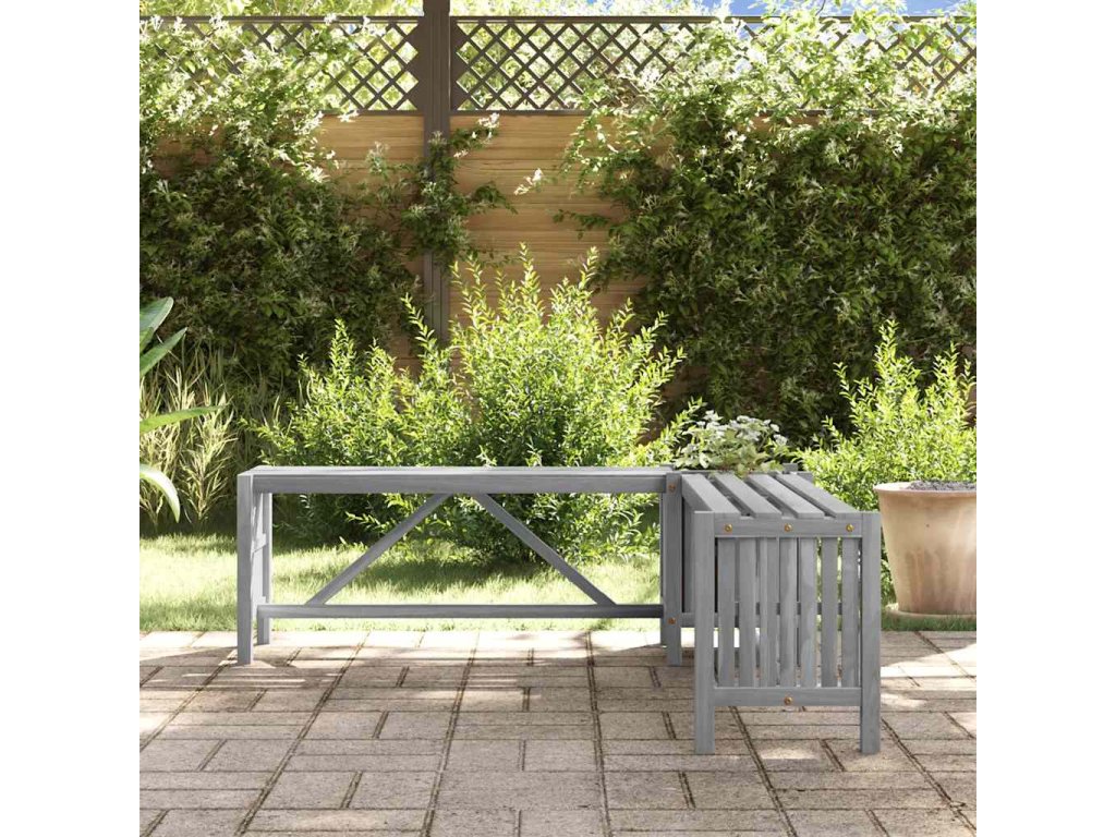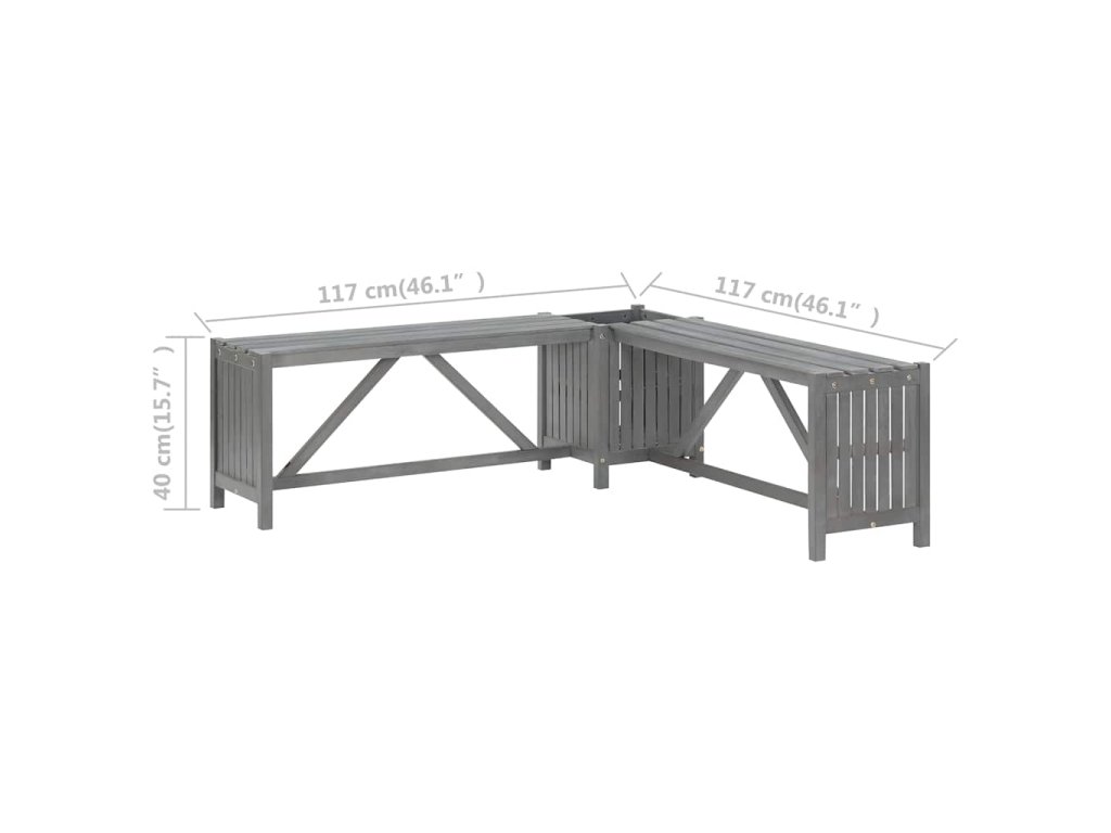 Zahradní rohová lavice s truhlíkem 117 cm masivní akácie šedá 311824