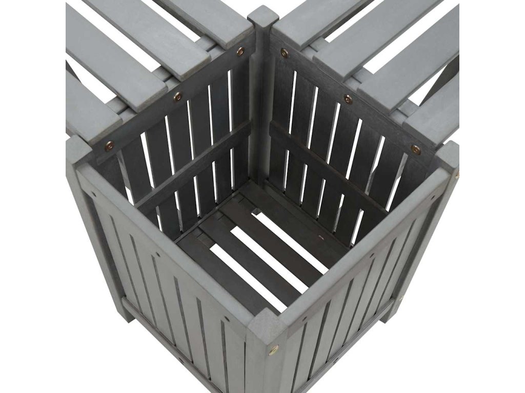 Venkovní lavička je vyrobená z masivního akáciového dřeva s šedou povrchovou úpravou, je tudíž stabilní a vhodná pro venkovní použití. Truhlíky po straně slouží jako skvělé místo pro pěstování různých květin nebo rostlin. Je to báječný doplněk do vaší zahrady.