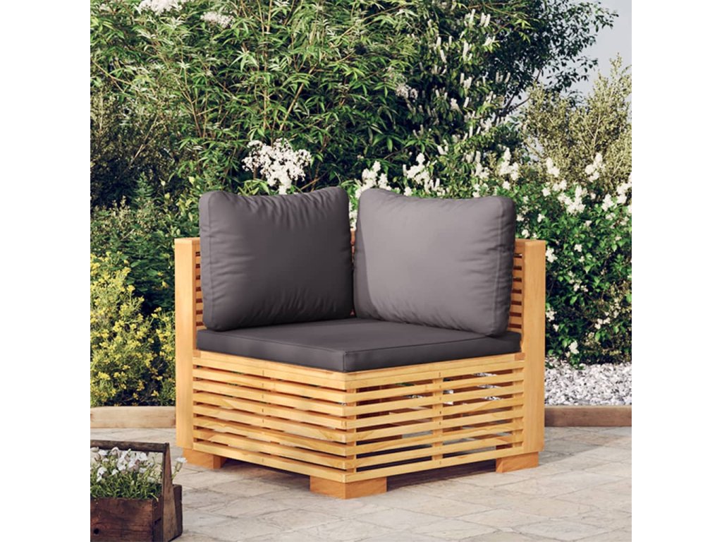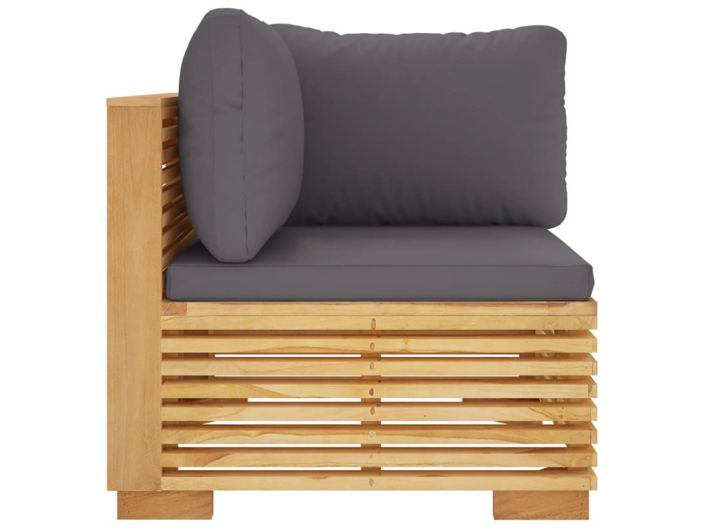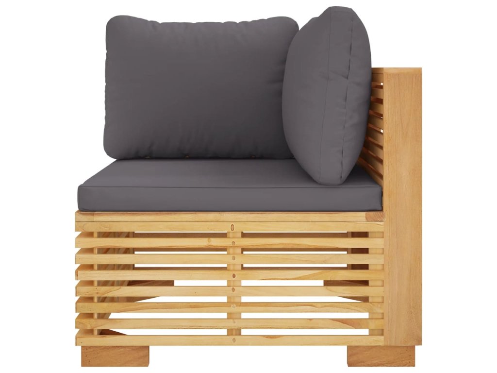 Zahradní rohová pohovka s tmavě šedými poduškami masivní teak 319160