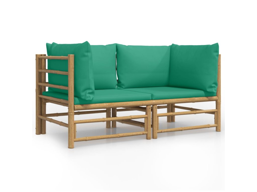 Zahradní rohové pohovky se zelenými poduškami 2 ks bambus 3155150