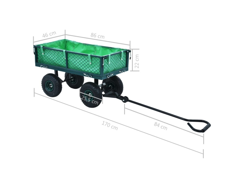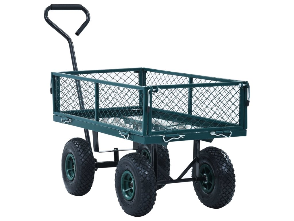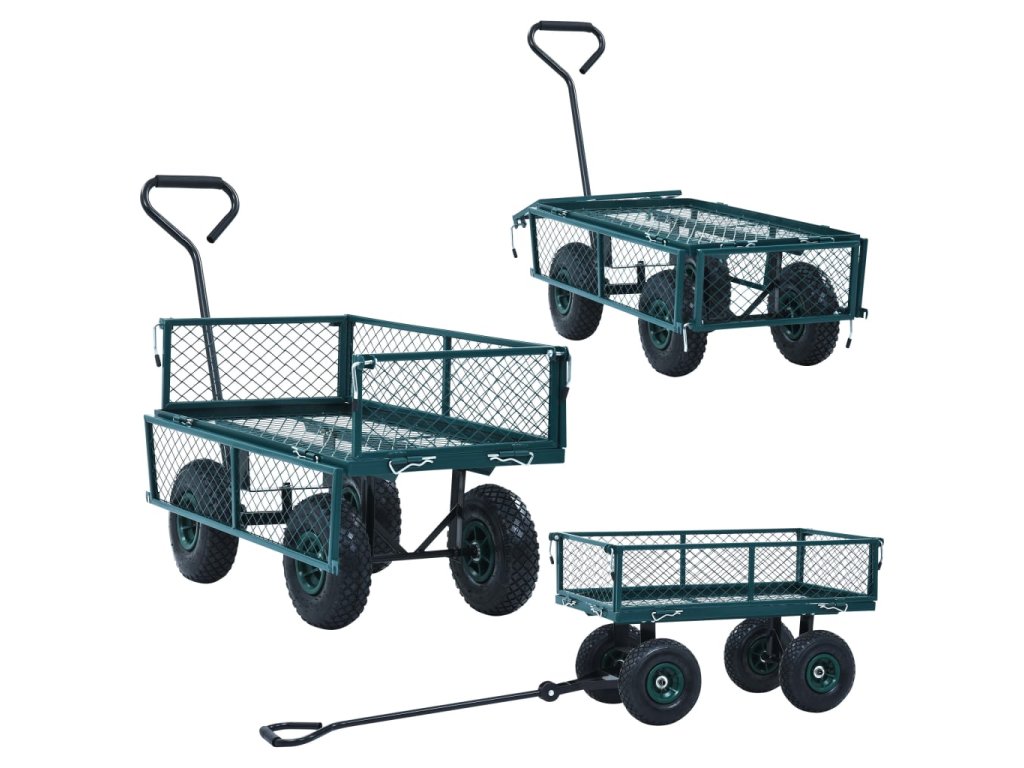 Tento zahradní vozík z odolné oceli je mimořádné stabilní a s dlouhou životností. Ruční vozík s maximální nosností 250 kg může snadno přepravovat květiny, listí, polínka a další věci. Boční panely lze otevírat pomocí rychloupínacích upevňovacích prvků pro snadné nakládání a vykládání. Velká pneumatická kolečka z odolného materiálu vám navíc umožní bez námahy táhnout vozík na nerovném terénu. Polstrovaná klika zajišťuje pevné uchopení.