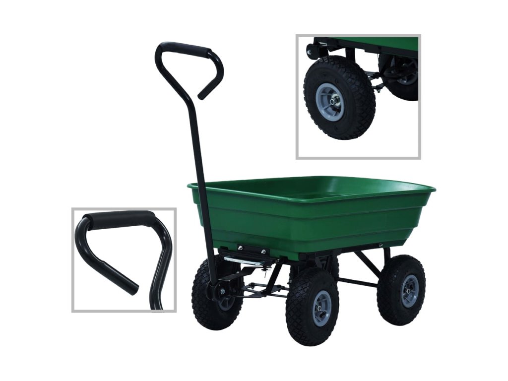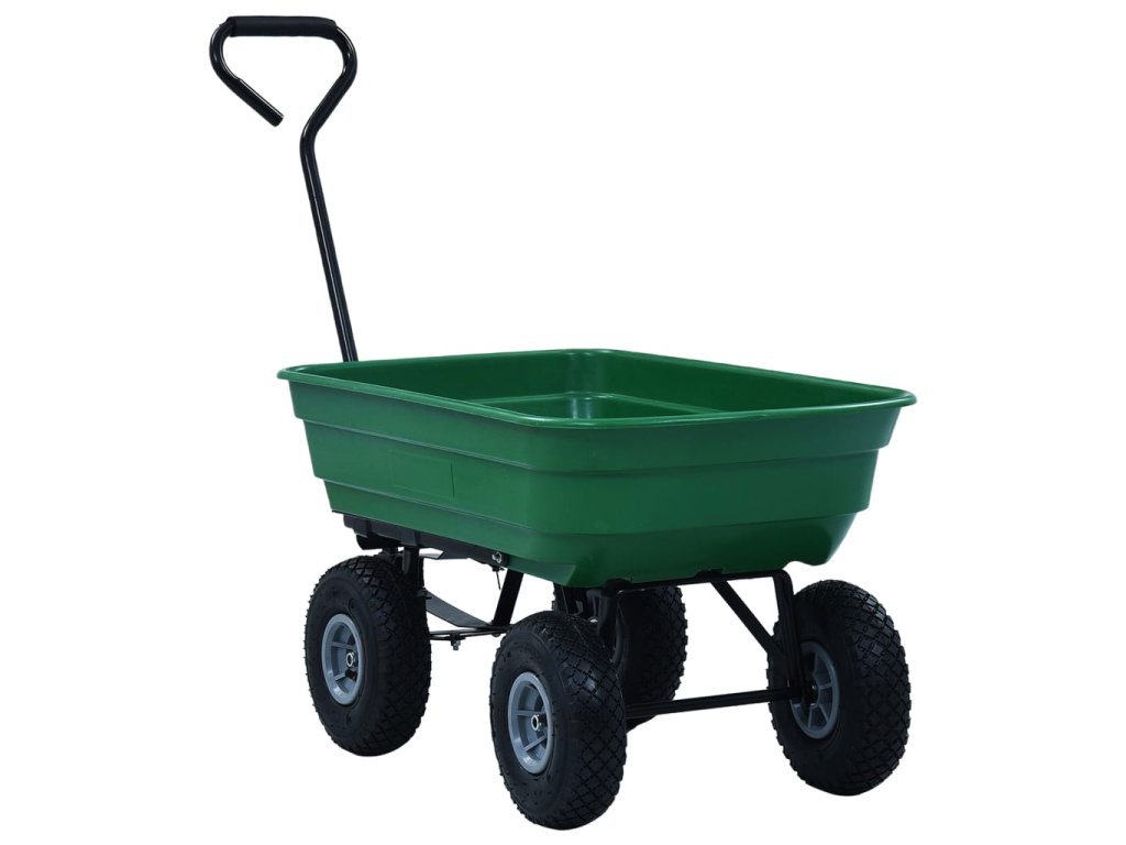Toto kolečko vám velmi usnadní stěhování a vykládání zásob. Má kapacitu 75 l a nafukovací kolečka, které jsou dostatečně odolná i pro náročné podmínky. Dále má všestrannou rukojeť a pohodlný mechanismus vyklápění. Vozík je vyrobený z velmi pevného polyesteru s ocelovým rámem a zeleným povrchem. Tento zahradní vozík je bezúdržbový, snadno se čistí, je odolný proti korozi a poskytuje tak roky spolehlivé služby.