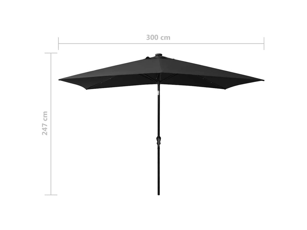 Zahradní slunečník s LED a ocelovou tyčí černý 2 x 3 m 313792