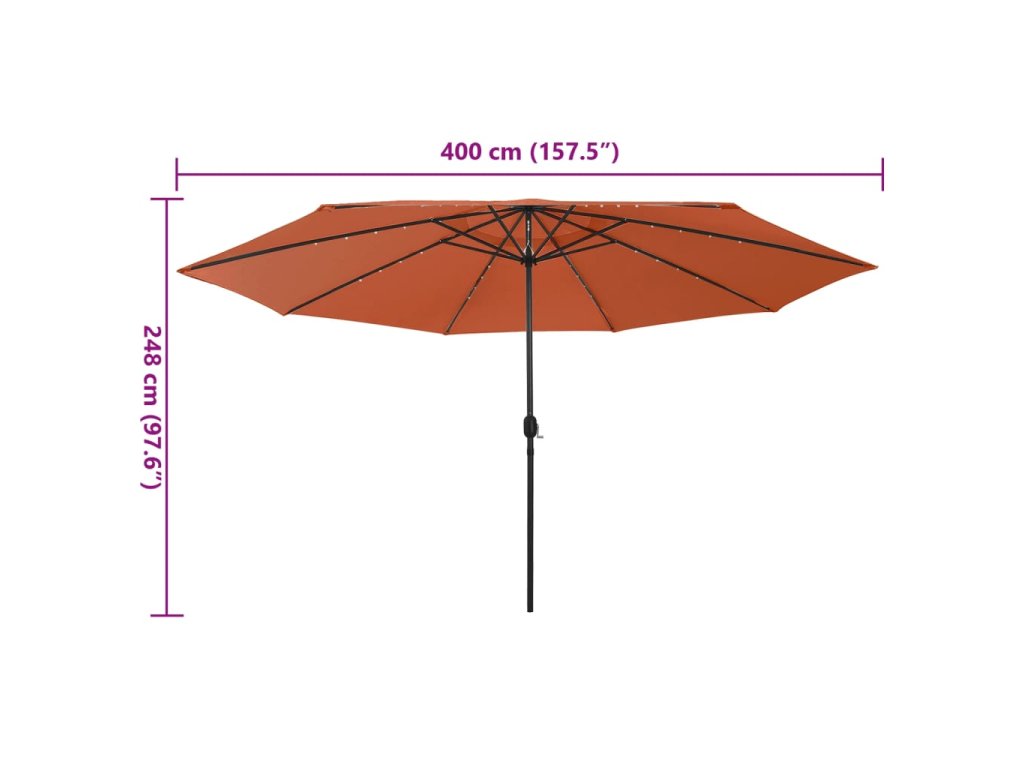 Zahradní slunečník s LED osvětlením 400 cm terakotový 312535