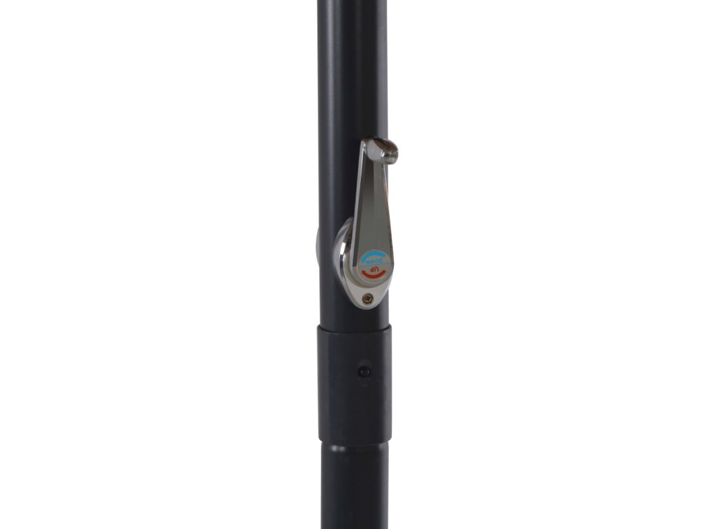 Tento zahradní slunečník se dá snadno otevřít jednoduchým otočením páčky na tyči. Hliníková tyč spolu s 8 odolnými žebry činí slunečník velmi trvanlivým. Velká křížová ocelová základna je odnímatelná a dodává slunečníku na stabilitě, aniž by zabírala příliš místa.
