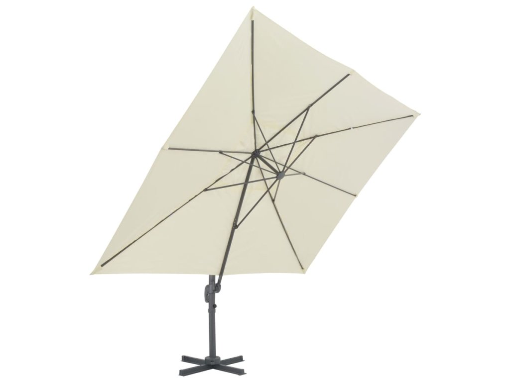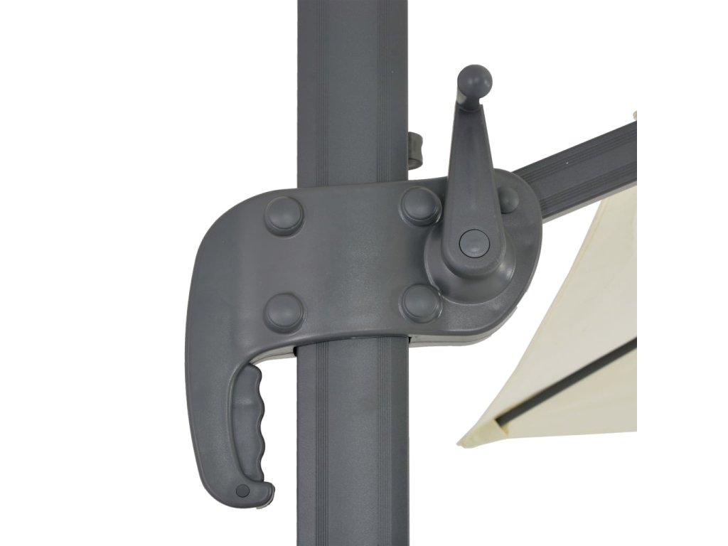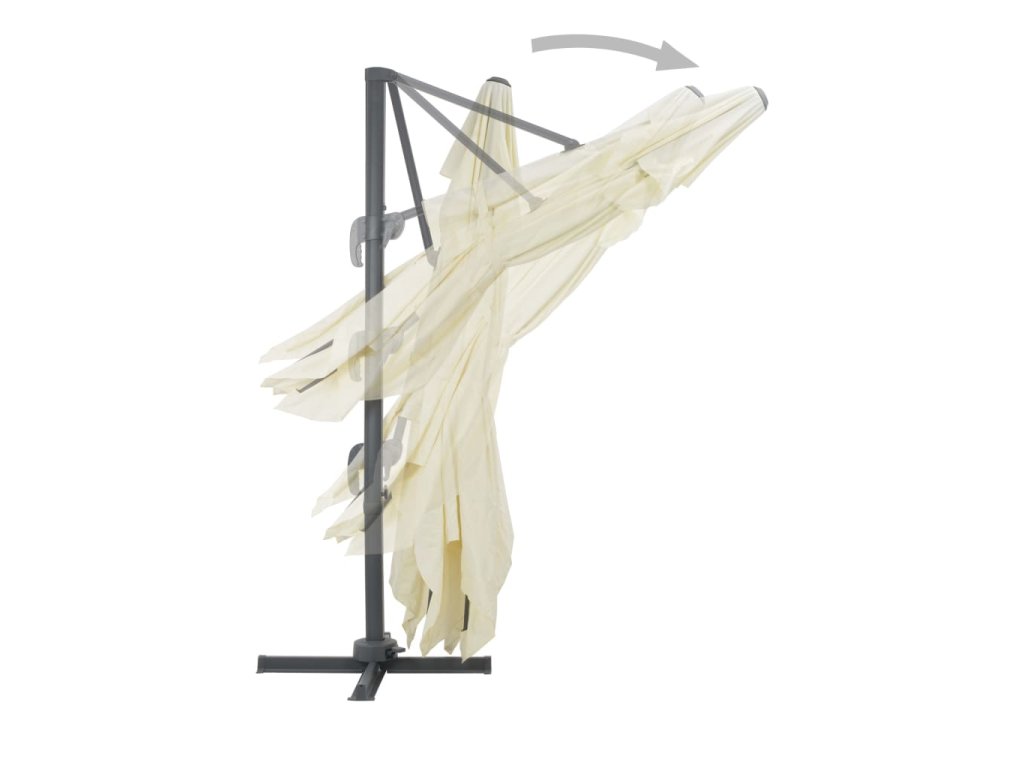 Tento zahradní slunečník se dá snadno otevřít jednoduchým otočením páčky na tyči. Hliníková tyč spolu s 8 odolnými žebry činí slunečník velmi trvanlivým. Díky exkluzivnímu designu ho můžete naklánět a otáčet o 360° tak, aby vás vždy spolehlivě chránil před sluníčkem. Velká křížová ocelová základna je odnímatelná a dodává slunečníku na stabilitě, aniž by zabírala příliš místa.