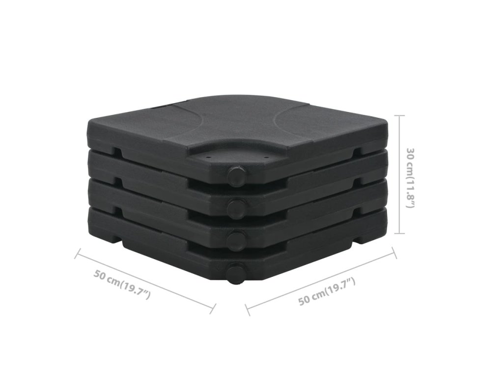 Dodatečný podstavec se skládá ze čtyř samostatných částí a lze jej naplnit 60 litry vody nebo 80 kg písku. Skvěle se hodí pro slunečníky s křížovou základnou. Pokud podstavec vyprázdníte, je velice lehký a dá se tedy snadno přenášet.
